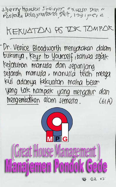 Demikian kalau sesorang sakit,sering yang menjadi penyebabnya adalah hal yang tidak kelihatan secara nyata.Menurut sudatu survey menjelaskan bahwa 70 % penyakit manusia disebabkan oleh gangguan pikiran manusia yang termasuk didalamnya, emosi,keinginan.
